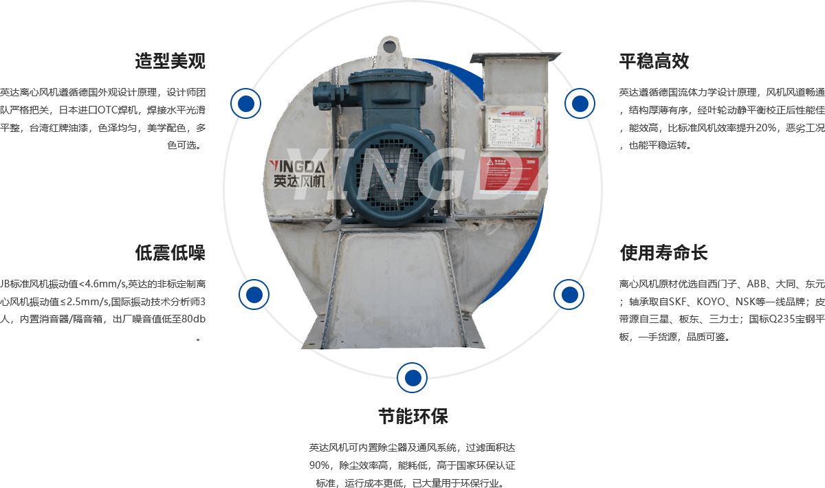 高壓離心通風(fēng)機廣泛用于環(huán)保行業(yè)、通風(fēng)送風(fēng)、粉塵送排風(fēng)行業(yè)、工業(yè)爐行業(yè)等等等各個領(lǐng)域,是工農(nóng)業(yè)生產(chǎn)中主要耗能設(shè)備之一。離心式通風(fēng)機是除塵通風(fēng)系統(tǒng)中四大件之一, 是一種比較精密的運轉(zhuǎn)機械,依靠葉輪的轉(zhuǎn)動在風(fēng)機內(nèi)部形成負壓,將外界氣體吸入并經(jīng)葉輪流道和蝸殼排出風(fēng)機。 離心式通風(fēng)機主要由機殼、 葉輪、 機軸、 集流器、 排氣口、 軸承箱體、聯(lián)軸器、 皮帶輪及底座等部件組成。