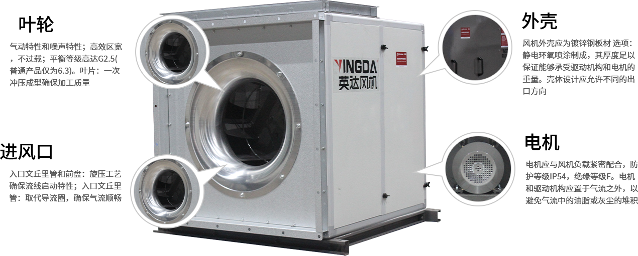 1.1.HTFC-Q無蝸殼箱式離心風(fēng)機(jī)是-種葉片為后傾式箱形離心風(fēng)機(jī),產(chǎn)品由低噪聲后傾離心風(fēng)機(jī)葉輪、電機(jī)、消聲箱體、支架等組成。根據(jù)安裝位置不同提供不同的角度進(jìn)出風(fēng)口位置,以滿足用戶不同的安裝需要。采用電機(jī)內(nèi)置安裝結(jié)構(gòu),減小聲源噪聲。主要用于通風(fēng)換氣。