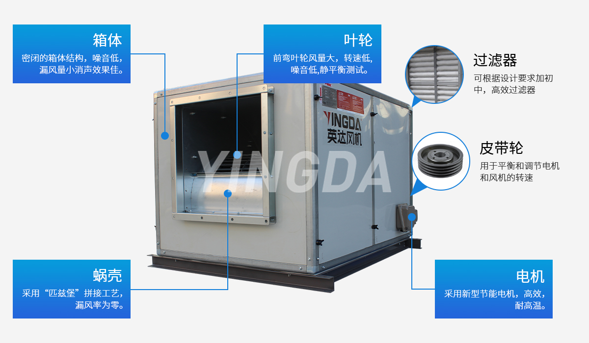 英達(dá)風(fēng)機(jī)蝸殼采用流線型雙進(jìn)風(fēng)結(jié)構(gòu),“匹茲堡”拼接工藝,漏風(fēng)率為零;雙側(cè)板一次成型,精度高,減小裝配后尺寸誤差;葉片一次沖壓 成型,專門夾具確保葉片安裝精確定位。